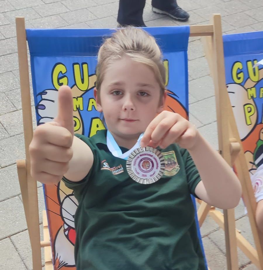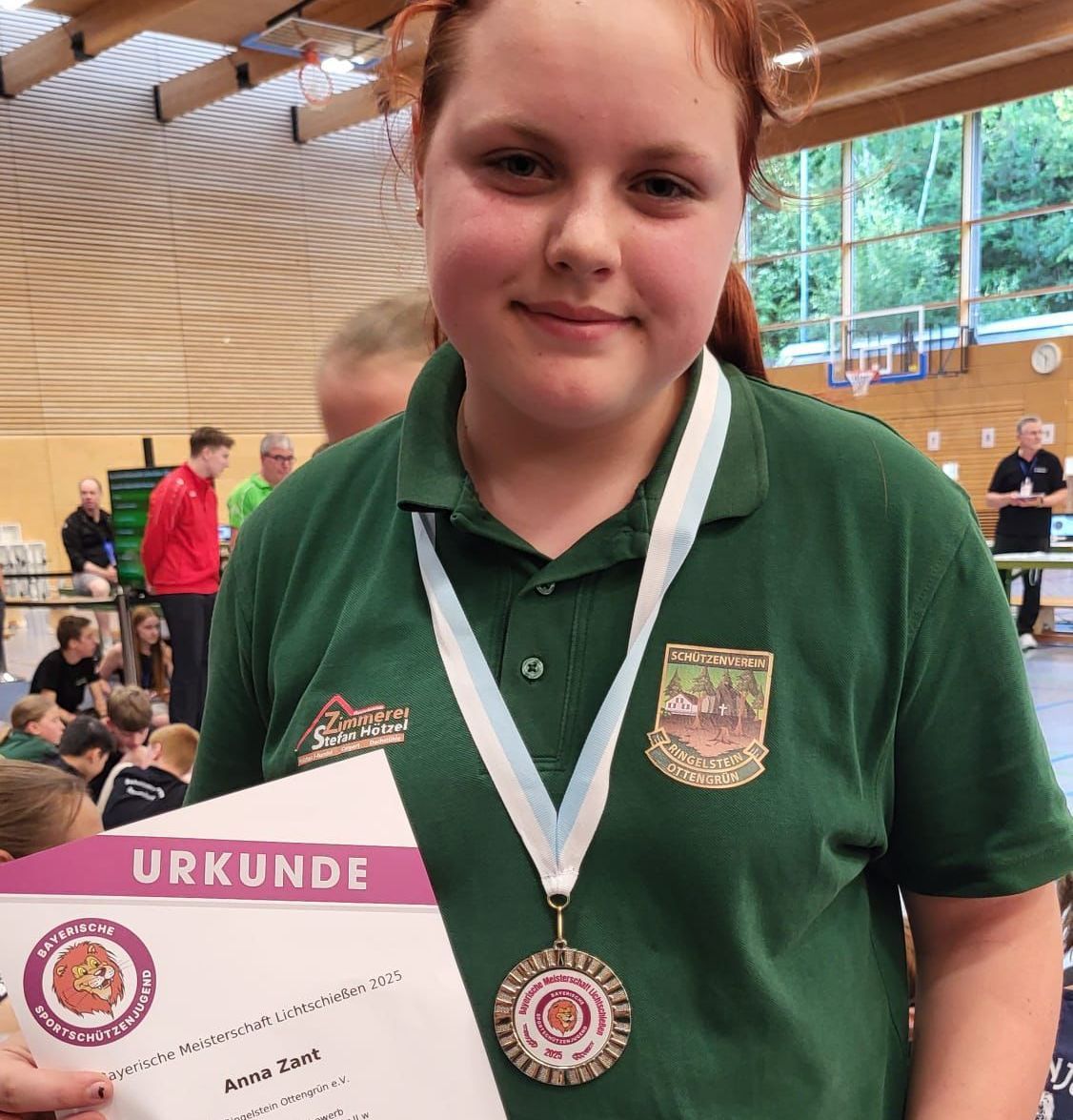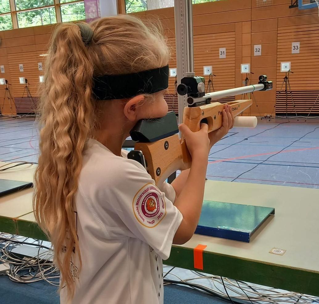 Am Wochenende des 31.05.2025 und 01.06.2025 machten sich fünf unserer jüngsten Ringelstoiner-Schützen auf den Weg nach Feucht bei Nürnberg. Dort wurden die Bayrischen Meisterschaften in den Disziplinen Lichtgewehr und Lichtpistole ausgetragen. Mit großer Freude und auch Aufregung ging am Samstag Niklas Artmann und Anna Zant an den Start. Nach einer 15 minutigen Standbelegung mit Probezeit, folgen 20 Wertungsschüsse. Niklas belegte mit 150 Ringen den 33. Platz von 130 Startern in seiner Klasse. Anna belegte auch mit 150 Ringen in ihrer Altersgruppe den 2. Platz von 7 Starterinnen. Am Sonntag folgten Jonas Ulrich, Amelie Ritter und Moritz Matzke zu diesem Turnier. Auch sie konnten sich in ihrer jeweiligen Altersgruppe unter Beweis stellen. Amelie belegte den 34 Platz mit 103,4 Ringen. Jonas holte sich den 8. Platz mit 115,7 Ringen und Moritz mit 86,8 Ringen den 2. Platz. Mit einem Gemeinsamen Siegerfoto und dem Maskottchen der Bayrischen Schützenjugend- dem „ GUSCHU” wurde im Anschluss noch gemütlich gefeiert, und Erfahrungen ausgetauscht. Insgesamt war dies ein großes Turnier, mit Insgesamt 810 Startern. Die Freude bleibt jedoch bei den Ringelstoiner Schützen, die aus dieser Veranstaltung mit 2 Bayrischen Vizemeister heimfuhren. Herzlichen Glückwunsch und allen Teilnehmern weiterhin Gut Schuss.