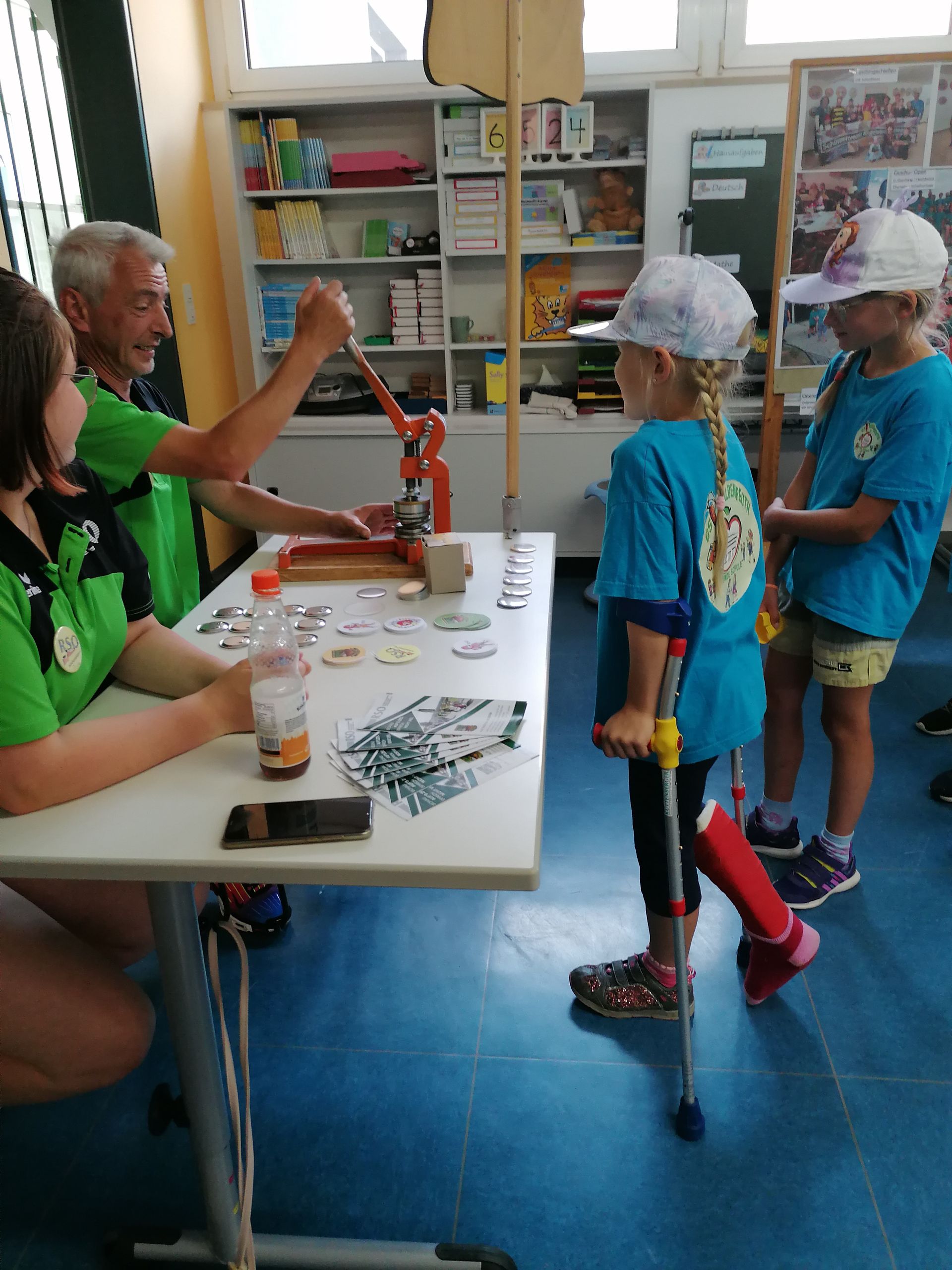 Als Erinnerung gab es frisch gepresste Buttons mit verschiedenen Logos des Schützenvereins. Vielen Dank an dieser Stelle an den Kreisjugendring Tirschenreuth für die Leihgabe.